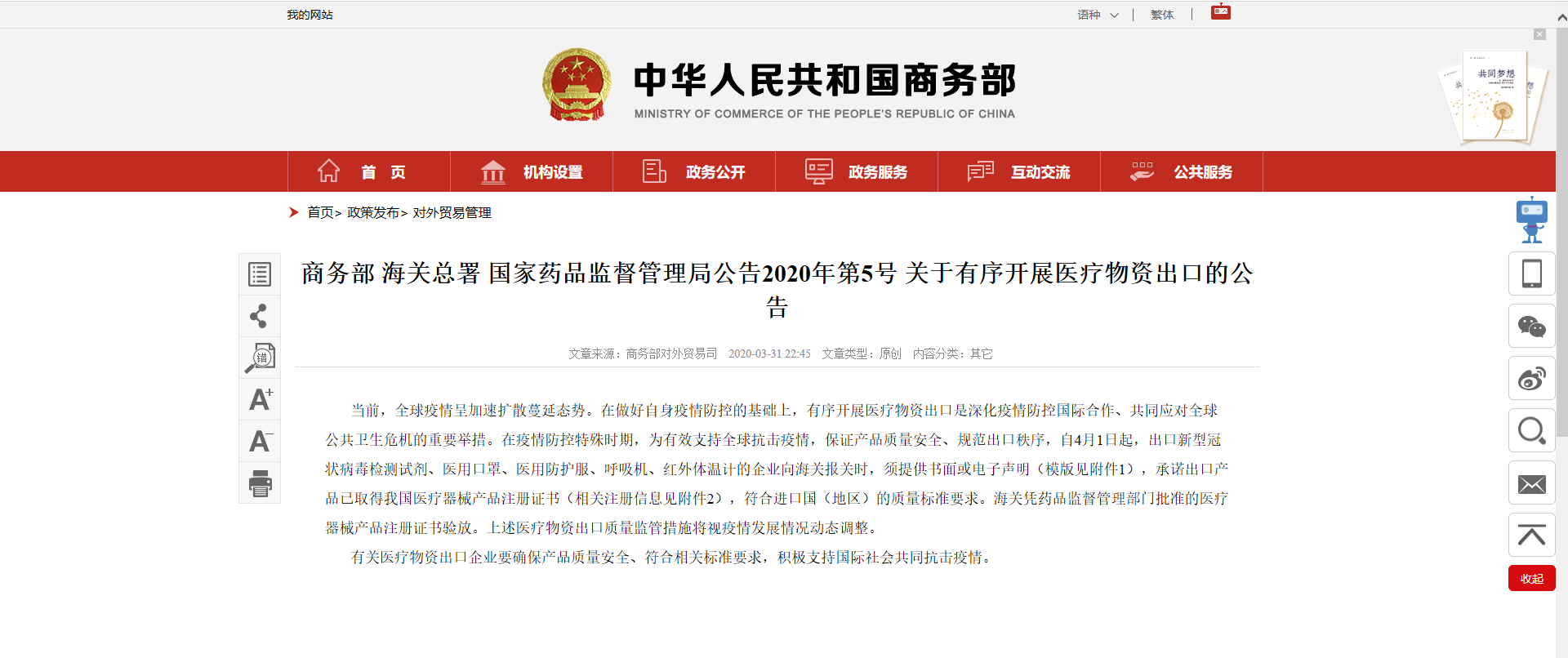 來源:商務(wù)部官網(wǎng)截圖