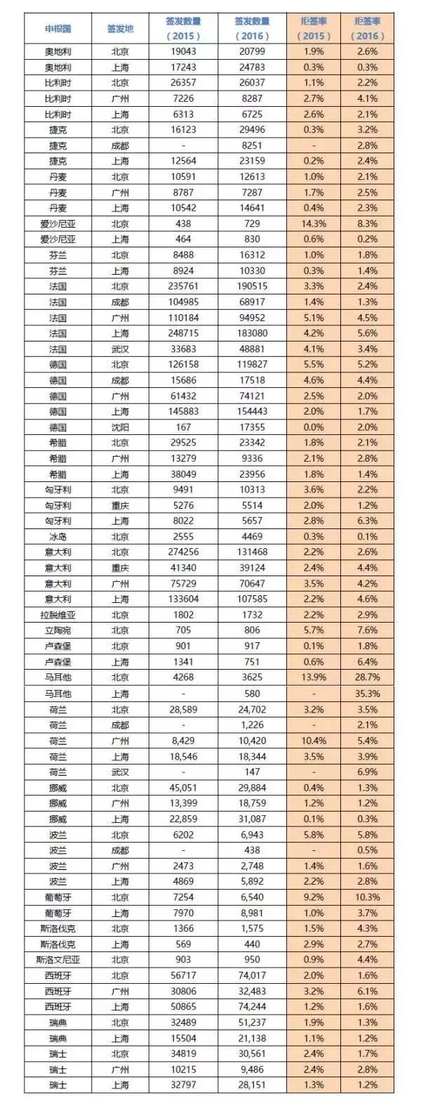 確定好國(guó)家后,同一個(gè)國(guó)家在不同地區(qū)領(lǐng)取的通過(guò)率不一樣,例如荷蘭在各個(gè)簽發(fā)地的拒簽率從2.1%到6.9%不等,所以簽證的時(shí)候可以注意一下遞交的地區(qū),有條件的話最好選擇通過(guò)率高的地區(qū)進(jìn)行簽證。又回到官方說(shuō)法:其實(shí)只要資料完備,保證所有信息完備的話基本不會(huì)被拒簽的,盡量不要報(bào)僥幸心理。