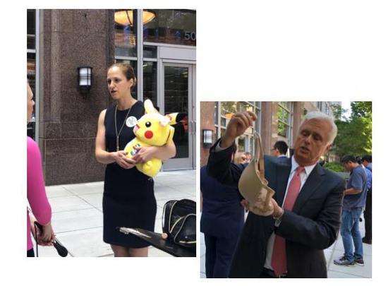 發(fā)言的美方代表們,時不時展示出玩具、圣經(jīng)、毛刷、內(nèi)衣等樣品,堅決反對加征關(guān)稅!