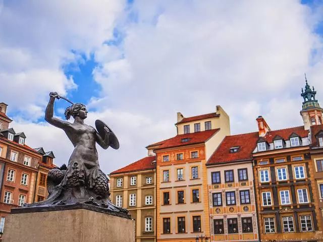最吸引人的當(dāng)是著名的美人魚雕像,這座手持利刃和盾牌的美人魚是華沙的標(biāo)志,雖歷經(jīng)戰(zhàn)火卻至今并保存完整,就像波蘭人民堅(jiān)強(qiáng)不屈的性格。