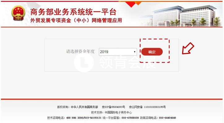 步驟5:中小企業(yè)用戶完成登錄后,進(jìn)入年度業(yè)務(wù)申報(bào)操作頁(yè)面,選擇資金填報(bào)年度,點(diǎn)擊“確定”按鈕,方可進(jìn)行下一步的申報(bào)流程。