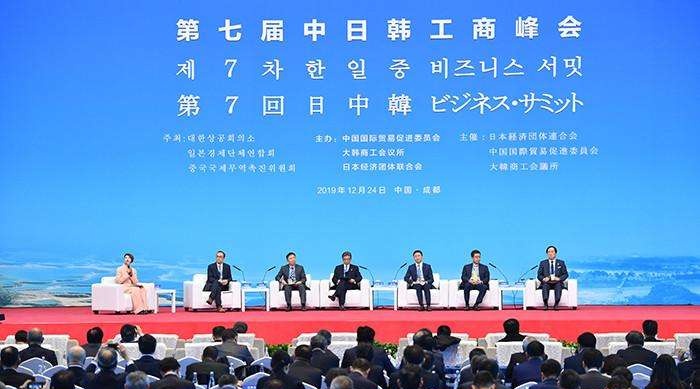 第七屆中日韓工商峰會由中國貿(mào)促會、韓國大韓商工會議所、日本經(jīng)濟團體聯(lián)合會共同主辦,為三國工商界搭建溝通交流、對接合作、互利共贏的平臺。三國工商界和政府代表約800人出席峰會。