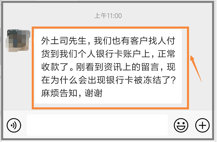 還有一種情況是,幫客戶代收款并代付貨款給其他人,自己也沒賺什么錢,結果發(fā)現(xiàn)賬戶就被凍結了。