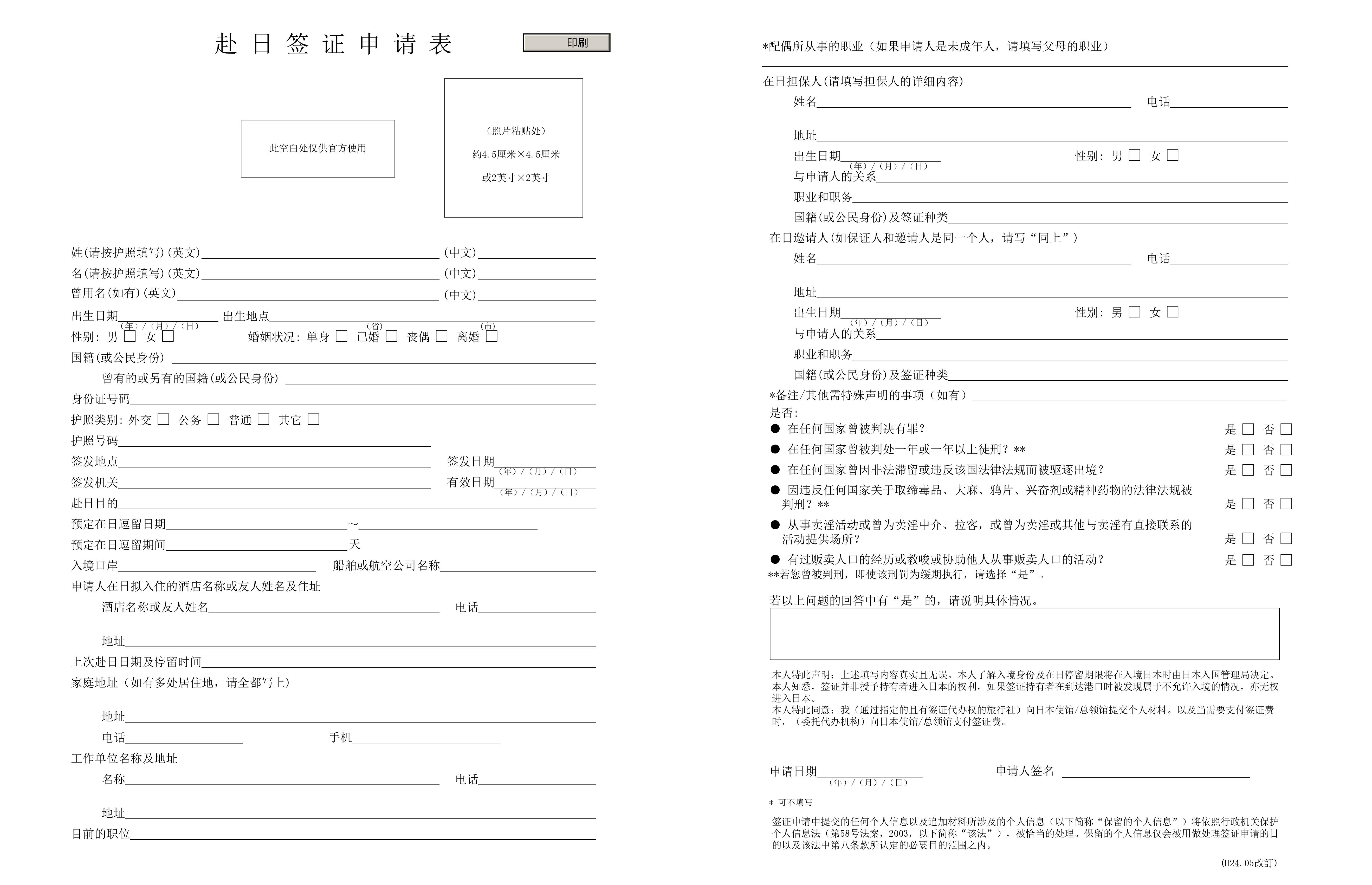 | * 赴日簽證申請表 | 原件 | 查看樣例 | |